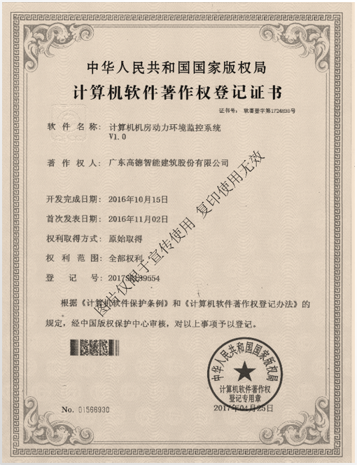 機房環境監控裝置證書